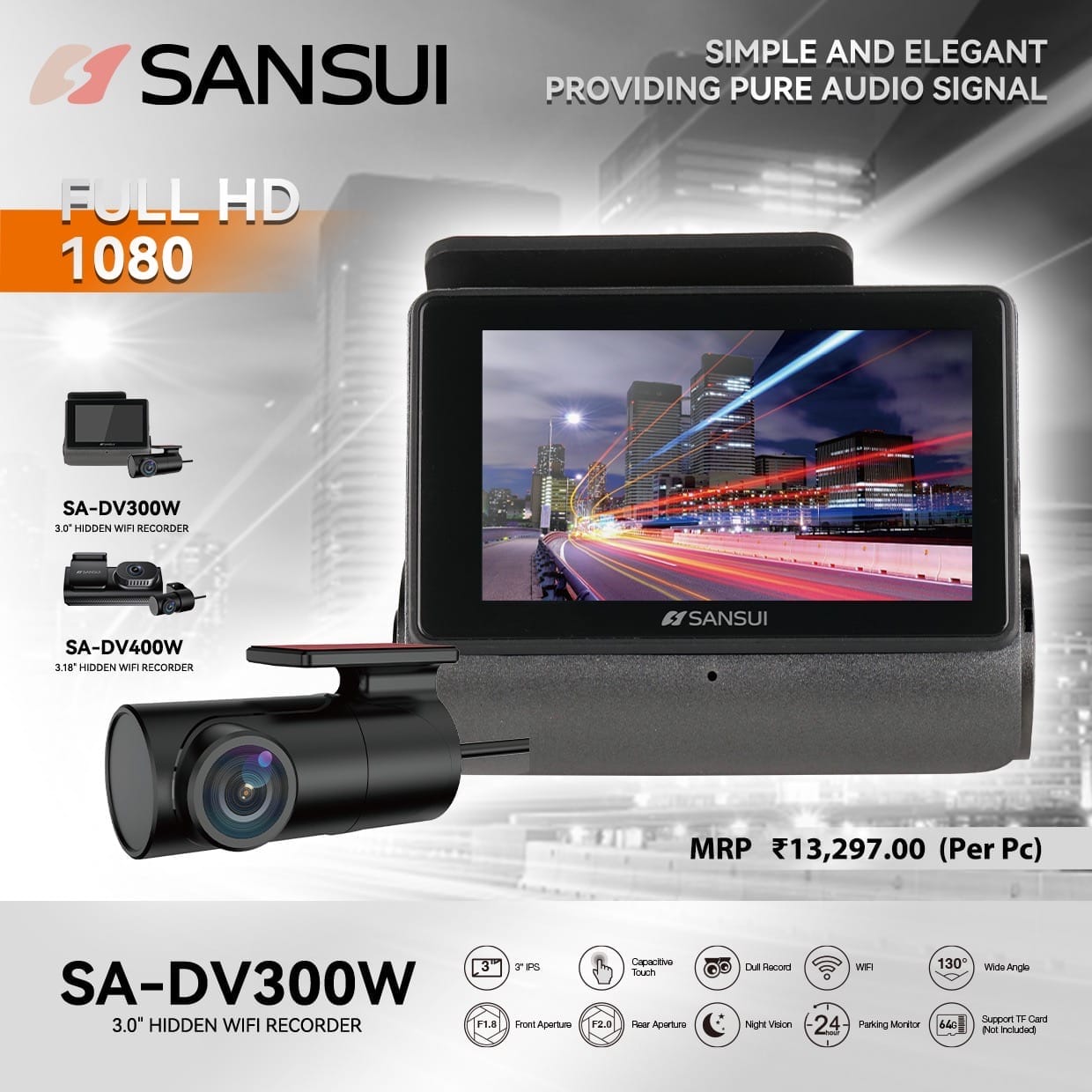 - The Sansui SA-DV300W DVR records high-definition video at 1080P resolution, ensuring clear and sharp footage of the road ahead and behind you. Whether it’s daytime or nighttime, this dash cam provides exceptional clarity, making it easier to capture important details in the event of an incident. To learn more about the advantages of Full HD resolution in dash cams, check out this article on 1080P dash cams.